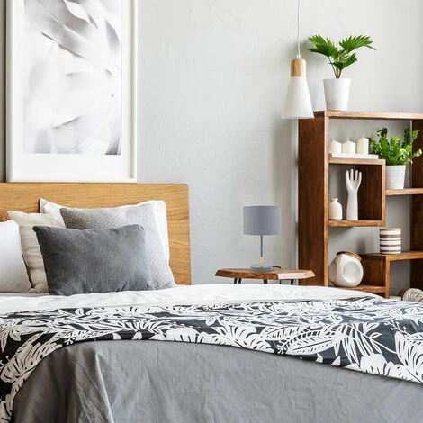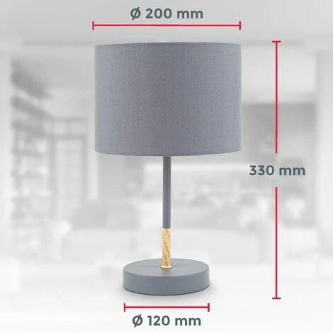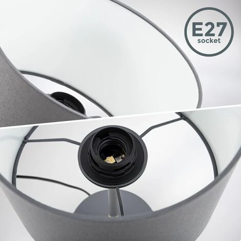 Il paralume in tessuto della lampada da tavolo a 1 fiamma è grigio e all’interno bianco e ha un diametro di 20cm.