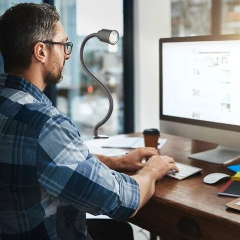 Serrabile fino a 3cm: questa lampada da scrivania flessibile è perfetta per il vostro ufficio e per il vostro spazio di lavoro. Può anche essere usato al vostro letto come lampada da lettura e lampada da comodino. La superficie di bloccaggio gommata previene i graffi.