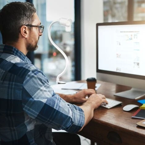 Serrabile fino a 3cm: questa lampada da scrivania flessibile è perfetta per il vostro ufficio e per il vostro spazio di lavoro. Può anche essere usato al vostro letto come lampada da lettura e lampada da comodino. La superficie di bloccaggio gommata previene i graffi.