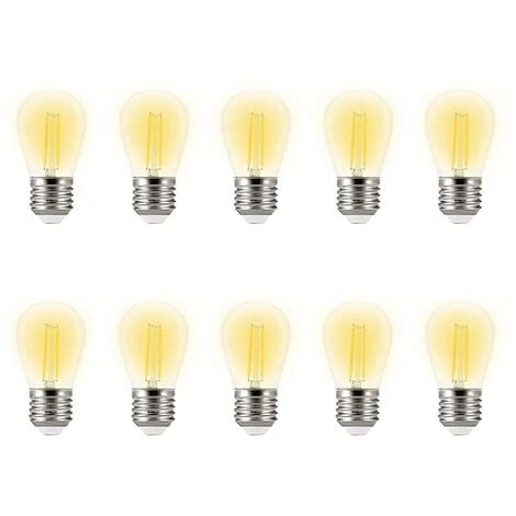La lampadina a Led a Filamento con attacco E27, comunemente detto attacco grande, con forma ST45 a sfera 2W, è la miglior soluzione per contenere i consumi e non intaccare le prestazioni.Con questa lampadina risparmi il 90% in meno rispetto alle classiche lampadine ad incandescenza e contribuiscono alla riduzione delle emissioni di CO2.Con una sorgente luminosa da 220 lumen, la lampadina è perfetta per illuminare ambienti o per creare atmosfera con una luce morbida e soffusa. La luce emessa dalla lampadina è di alta qualità ed ha un angolo di apertura del fascio luminoso di 360°.La lampadina a bulbo è la più classica delle lampadine questo modello, da 2200 gradi kelvin, emette una luce calda, ideale se vuoi dare l’idea di un ambiente intimo e accogliente.Il prodotto è venduto in confezione da 10 pezzi ed è adatta per riempire catenarie con attacco E27 ideale per illuminare giardini, verande, terrazze ecc.