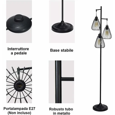 Lampada da terra industriale: La nostra lampada da terra di metallo ha un design unico e industriale che attira l’attenzione degli ospiti. Il paralume a forma di gabbia per uccelli si adatta a diversi stili decorativi come minimalista, industriale e mid-century.