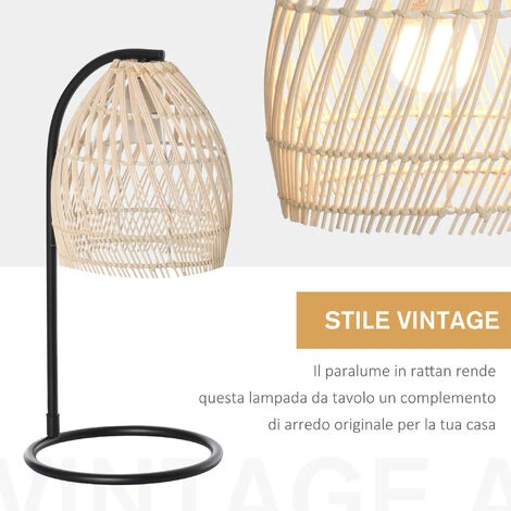 Rendi la tua casa ancora più elegante con questa lampada da tavolo HOMCOM! Il paralume in rattan crea un’illuminazione tenue, per portare un’atmosfera accogliente e intima in ogni ambiente. La base e la struttura in metallo mantengono stabile questa lampada da appoggio che, grazie al lungo cavo di alimentazione, potrai posizionare liberamente dove preferisci.