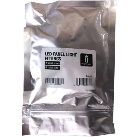 È un kit di installazione a sospensione per pannelli LED progettato per fornire una soluzione facile e conveniente per l’installazione di pannelli LED a sospensione. Questo kit è realizzato in acciaio di alta qualità , il che garantisce robustezza e durata nel tempo.Dotato di 4 cavi in acciaio, che offrono una regolabilità dell’altezza per adattarsi alle esigenze specifiche del progetto di illuminazione, include tutti i componenti necessari per l’installazione: ganci di fissaggio e attacchi a parete.