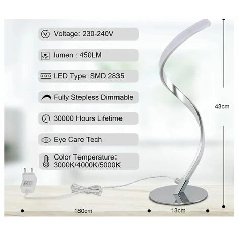 [Design a spirale e stile contemporaneo] Il design contemporaneo e minimalista dell’illuminazione a spirale con lato e fondo in acciaio inossidabile ti ofITe un’estetica artistica semplice e un’impressione visiva unica. La luce bianca calda, naturale e ITedda crea un’atmosfera diversa e confortevole e rende la tua casa elegante e moderna. [Dimbal e controllo one-touch] La lampada da tavolo a LED ha una temperatura di colore di 3000 K bianco caldo, 4000 K naturale bianco, bianco ITeddo 5000K e una funzione dimmerabile. È possibile regolare facilmente la luminosità della lampada al livello desiderato premendo un pulsante. ad esempio, luce bianca calda bassa per riposare e luce bianca naturale alta per leggere o studiare. [Nessun sfarfallio e cura degli occhi] Il motivo aerodinamico può ridurre l’emissione di luce diretta. La lampada da tavolo curva è vicina alla luce del giorno e la piastra del diffusore emette una luce morbida senza immagini fantasma, abbagliamento o sfarfallio. I LED SMD 2835 di alta qualità non generano stroboscopie che non affaticano gli occhi anche dopo lunghe ore di funzionamento. [Base in metallo antiscivolo e stabile] Grazie al materiale antiscivolo della base, puoi puoi usare questa moderna lampada da tavolo comodamente senza preoccuparti della stabilità. Il ferro stabile e l’alluminio di alta qualità garantiscono una lunga durata e un’esperienza applicativa sicura. Viene fornito con un cavo di alimentazione minimo di 1,5 m che è abbastanza lungo quanto necessario. [Uso versatile] Design unico adatto a molteplici ambienti di applicazione, qualsiasi cosa adatta come lampada da comodino, luce notturna o lampada da tavolo da lavoro. Un ornamento perfetto per la tua camera da letto, soggiorno o ufficio! Rendi la tua vita più design.