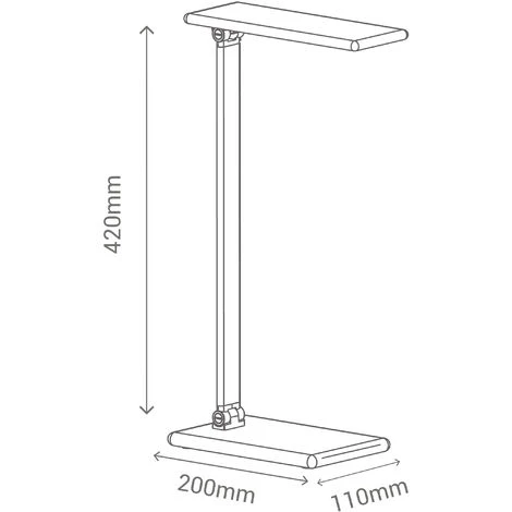 Lampada LED da scrivania in alluminio, di ottima efficienza luminosa. È possibile controllare la temperatura (2700-6500K) e la sua intensità (462lm) premendo o facendo scorrere le dita sulla superficie della base e sul corpo del collo d’oca. La mancanza di pulsanti rende il design semplice, pulito ed elegante. Cavo da 150 cm incluso. Dimensioni: 11x20x42 cm.