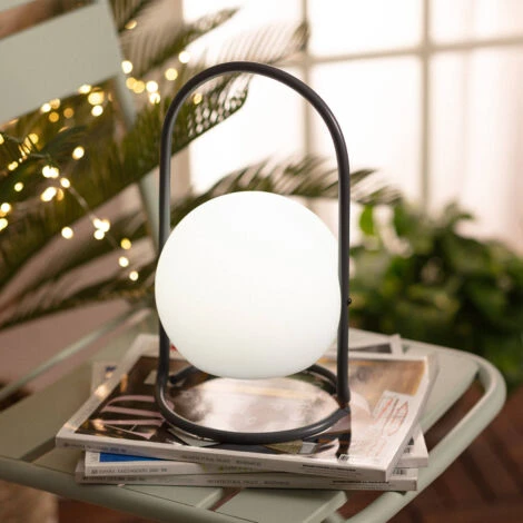 La Lampada da Tavolo per Esterni LED 2.5W Portatile Metallo con Batteria USB Ricaricabile Mkono è una lampada portatile, leggera e dal design elegante. La lampada è composta da una base in acciaio con una impugnatura e un diffusore a forma di sfera in polietilene che emette una piacevole luce naturale.
