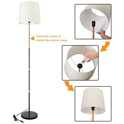 1 x Lampada Piantana Terra Design Moderno Paralume E27 Tessuto Legno Metallo Nero