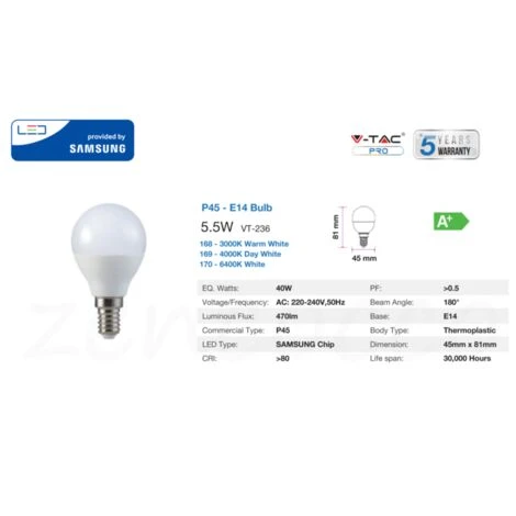 Con attacco E14, forma MINIBULBO e dimensioni pari a D=45 X H=81 mm, permette la sostituzione di una lampadina tradizionale senza apportare modifiche dando così la possibilità di risparmiare sulla bolletta grazie alla sua efficenza energentica di classe A+.