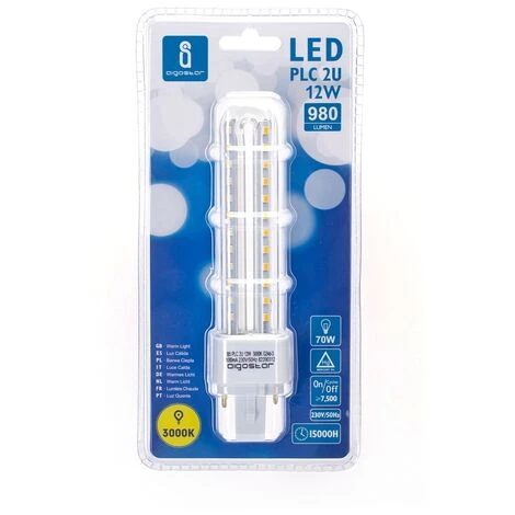 La lampadina a Led con attacco G24d-3 (2 pin) PL-C 12W, corrispondente ad una tradizionale lampadina da 82W, è il bilanciamento perfetto tra prestazioni e impatto energetico.Con questa lampadina risparmi l’85% in meno rispetto alle classiche lampadine ad incandescenza e contribuiscono alla riduzione delle emissioni di CO2.La sorgente luminosa da 1180 lumen rappresenta lo standard e le permette di adattarsi al 90% delle situazioni quotidiane. La luce emessa dalla lampadina è di alta qualità grazie al suo indice di resa comatica (CRI) ≥80 ed ha un angolo di apertura del fascio luminoso di 360°.Con i suoi 3000K la lampadina emette una luce calda, ideale se vuoi dare l’idea di un ambiente intimo e accogliente.Le Lampadine PL-C La sono un tipo di lampadina fluorescente e compatta, utilizzate all’interno di faretti da soffitto e applique per illuminare uffici, negozi e abitazioni.