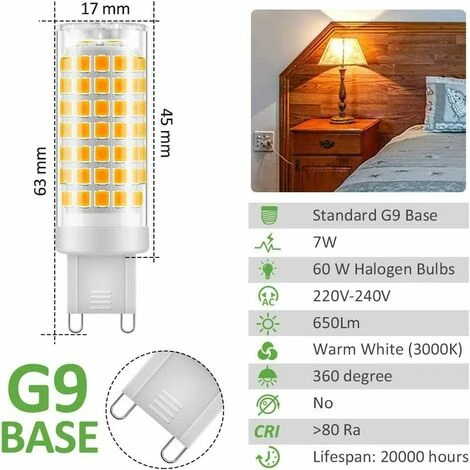 Risparmio energetico: equivalente a una lampadina alogena G9 da 60 W, solo 7 watt, risparmia il 90% sul costo dell’elettricità