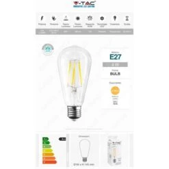 V-TAC VT-2065D LAMPADINA LED E27 VETRO 5W BULB ST64 FILAMENTO AMBRATA DIMMERABILE 300 Lm LUCE 2200K