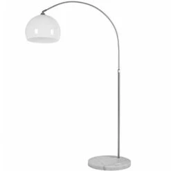 - DATI TECNICI – materiale paralume: plastica | materiale arco: acciaio inox | materiale base: marmo | misure: altezza 146-220cm; paralume Ø30cm; base Ø30cm; lunghezza cavo 195cm | lampadine (non incluse): E27; max. 40W | tensione di collegamento: 230V | colore: argentato; bianco-opale