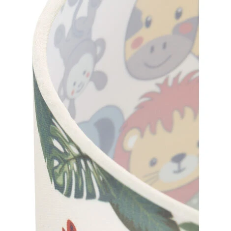 buon umore e voglia di giungla. Grazie alla realizzazione in acciaio di alta qualità, questa magica lampada non è solo resistente e robusta, ma con il suo motivo giocoso anche quando è spenta porta buon umore nella stanza e offre la possibilità di scoprire sempre qualcosa di nuovo. Una volta accesa, il paralume realizzato in una combinazione di tessuto e PVC diffonde una luce fantasiosa e colorata e porta l’emozionante atmosfera della giungla nella camera dei bambini!
