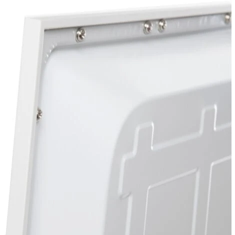 Finitura bianca realizzata in alluminio. Il pannello ha un grado di protezione IP25 (valido per polvere e umidità all’interno), oltre ad essere abbastanza robusto per le richieste meccaniche richieste.