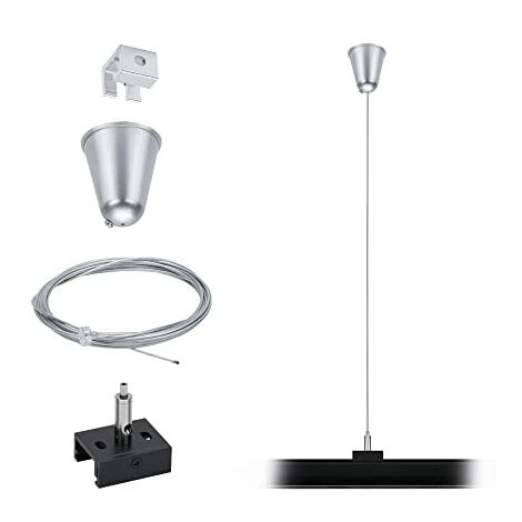 Paulmann 95585 ProRail3-Sistema Sospensione della Corda, 3 m, Nero, Sistema di binari a 3 Fasi, Illuminazione in Metallo per Aree Commerciali