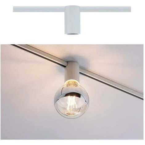 La presa del soffitto URail Spot di colore bianco è particolarmente adatto per la combinazione con lampade decorative come Kopfspiegel- e Filamentlampen. La presa interna E27 e la ricezione ferroviario scompaiono alla vista dietro un coperchio di metallo.