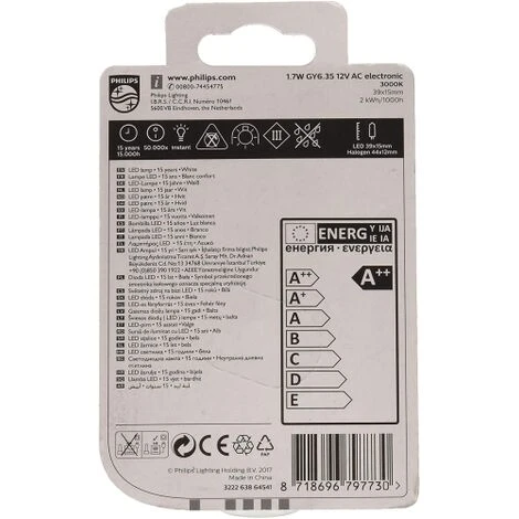 ![Philips Lighting 8718696797730 LED Capsule GY6.35 1,7-20W WH 12V 1BC/6, 1 W, Bianco [Classe Di Efficienza Energetica A++] 4 Philips Lighting 8718696797730 LED Capsule GY6.35 1,7-20W WH 12V 1BC/6, 1 W, Bianco [Classe Di Efficienza Energetica A++] - immagine 2](https://www.lampadinedeals.com/wp-content/uploads/2025/02/33447193_2.webp)