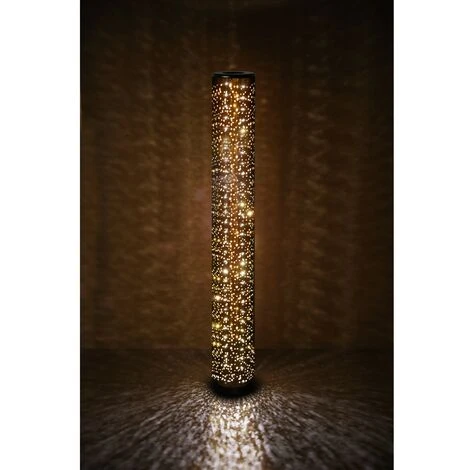 La lampada da terra TACO del brand Trio Lighting presenta una montatura cilindrica in tessuto nero con paralume decorato da stelle glitterate oro, interruttore a pedale.