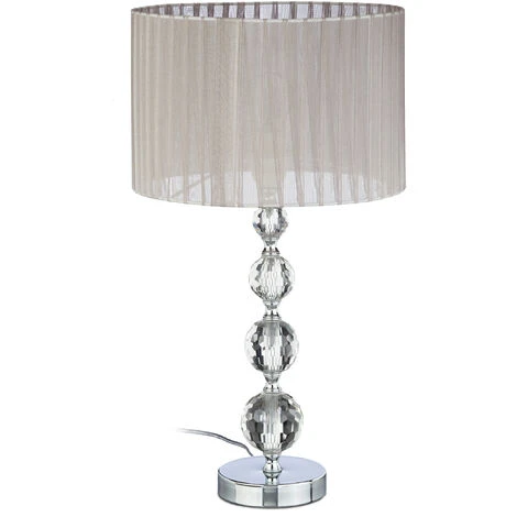 La lampada da comodino si fa notare sia da accesa che da spenta durante il giorno. Il paralume cilindrico convince grazie ai suoi nastri voile disposti in maniera uniforme. Le sfere del collo del lume saltano particolarmente all’occhio, queste sono in cristallo e presentano un taglio dal motivo vivace. Questa lampada fa la sua bella figura sia come lume da lettura in camera da letto che come lampada da tavolo decorativa in salotto. La base garantisce stabilità e il cavo lungo 169 cm ca. la rende una fonte luminosa utilizzabile in maniera flessibile.