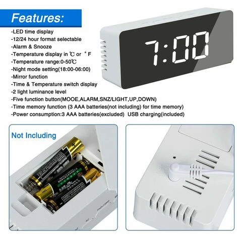 - Con la sveglia a specchio inizi felicemente la giornata. L’elegante sveglia da tavolo fornisce informazioni sull’ora della sveglia, l’ora o la temperatura ambiente (0° – 50° C). Le sue dimensioni compatte e il peso ridotto lo rendono il compagno di viaggio ideale. Anche in campeggio e in campeggio, dove la facciata a specchio consente acconciature spontanee e controllo del trucco