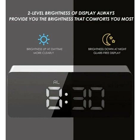 【Orologio digitale】Grande schermo: questa sveglia digitale ha un grande schermo a specchio LED da 3″, è una delle migliori sveglie per camere da letto grazie alla sua semplicità. Questo orologio digitale premium è qualcosa con cui ti divertirai a svegliarti ogni mattina. Lo schermo LED è nitido e moderno, proprio come lo schermo a specchio, e mostra l’ora e la temperatura, di facile lettura.