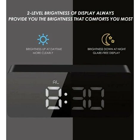【Orologio digitale】Grande schermo: questa sveglia digitale ha un grande schermo a specchio LED da 3″, è una delle migliori sveglie per camere da letto grazie alla sua semplicità. Questo orologio digitale premium è qualcosa con cui ti divertirai a svegliarti ogni mattina. Lo schermo LED è nitido e moderno, proprio come lo schermo a specchio, e mostra l’ora e la temperatura, di facile lettura.