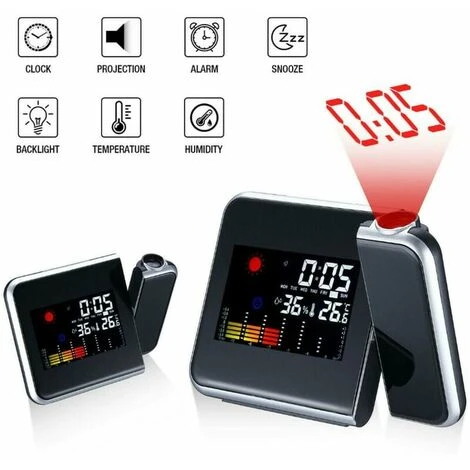 La proiezione è alla moda e ha un aspetto futuristico. Proietta l’ora su qualsiasi parete o soffitto. Quando l’orologio di proiezione si trova a 2 metri dalla parete o dal soffitto ricevente, l’altezza del carattere proiettata è di circa 20 cm; La distanza di proiezione è di circa 1-5 m, la proiezione può essere ruotata di 180°.^