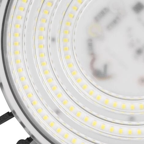 Apparecchio LED industrialel 150W tipo UFO con angolo luminoso di 90º e tensione standard di 190-260V-AC. Costruito con una robusta struttura in alluminio per una corretta dissipazione del calore, è un apparecchio perfetto per l’installazione in tutti i tipi di locali commerciali, magazzini industriali, officine, parcheggi, impianti sportivi, ecc.